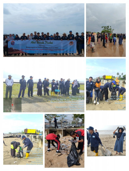 Aksi Bersih Pantai dalam rangka memperingati "Hari Konservasi Alam 2023" Tema Laut sebagai sumber kehidupan jangan cemari dengan sampah plastik, yang...