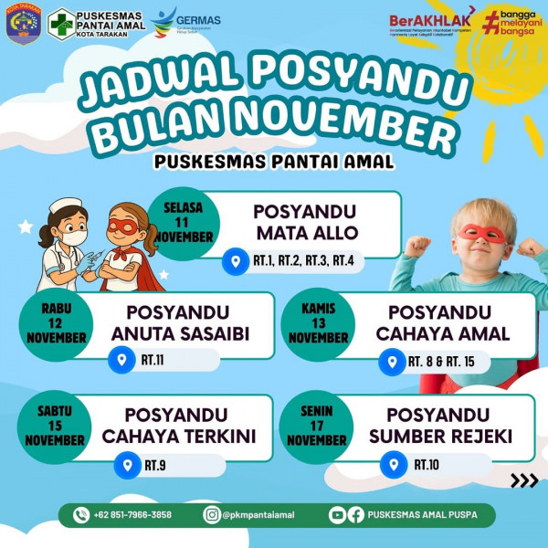 Jadwal Posyandu Puskesmas Pantai Amal November 2025Jadwal Posyandu November, Jangan lupa ajak si kecil datang ke Posyandu terdekat untuk pemantauan tu...