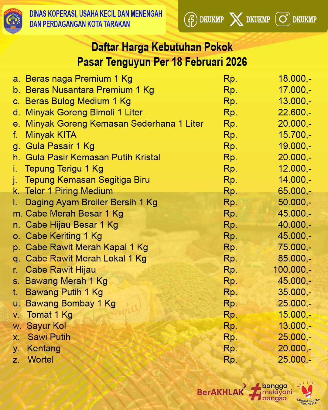 Update Daftar Harga Kebutuhan Pokok di Kota Tarakan