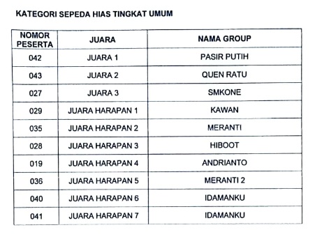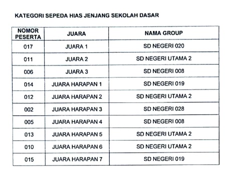 Pengumuman Pemenang Lomba Pawai Budaya Kategori Sepeda Hias Tahun 2025