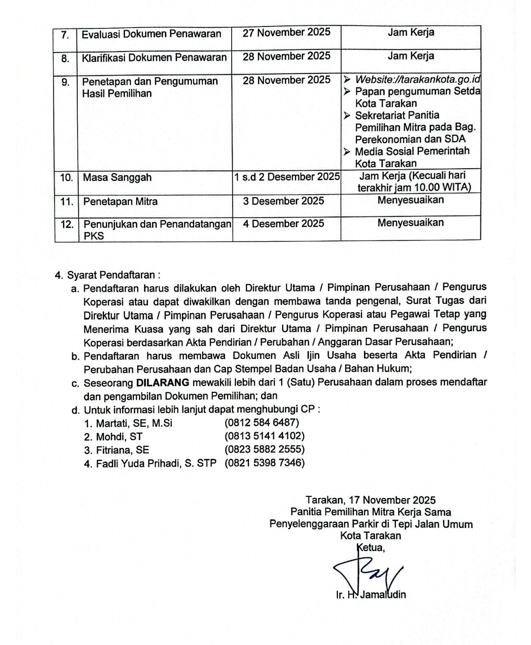 Pengumuman Pemilihan Mitra Penyelenggara Parkir Di Tepi Jalan Umum Tahun 2025
