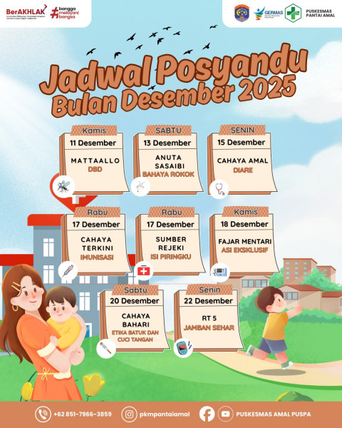 Halo Ayah dan Bunda! 👋Jadwal Posyandu Balita untuk Bulan Desember 2025 sudah siap nih!Yuk, ajak si...