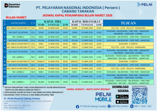UPDATE : JADWAL KAPAL PENUMPANG YANG MENYINGGAHI PELABUHAN MALUNDUNG TARAKAN BULAN MARET 2026.NB : BELILAH TIKET JAUH HARI SEBELUM KEBERANGKATAN SELAM...