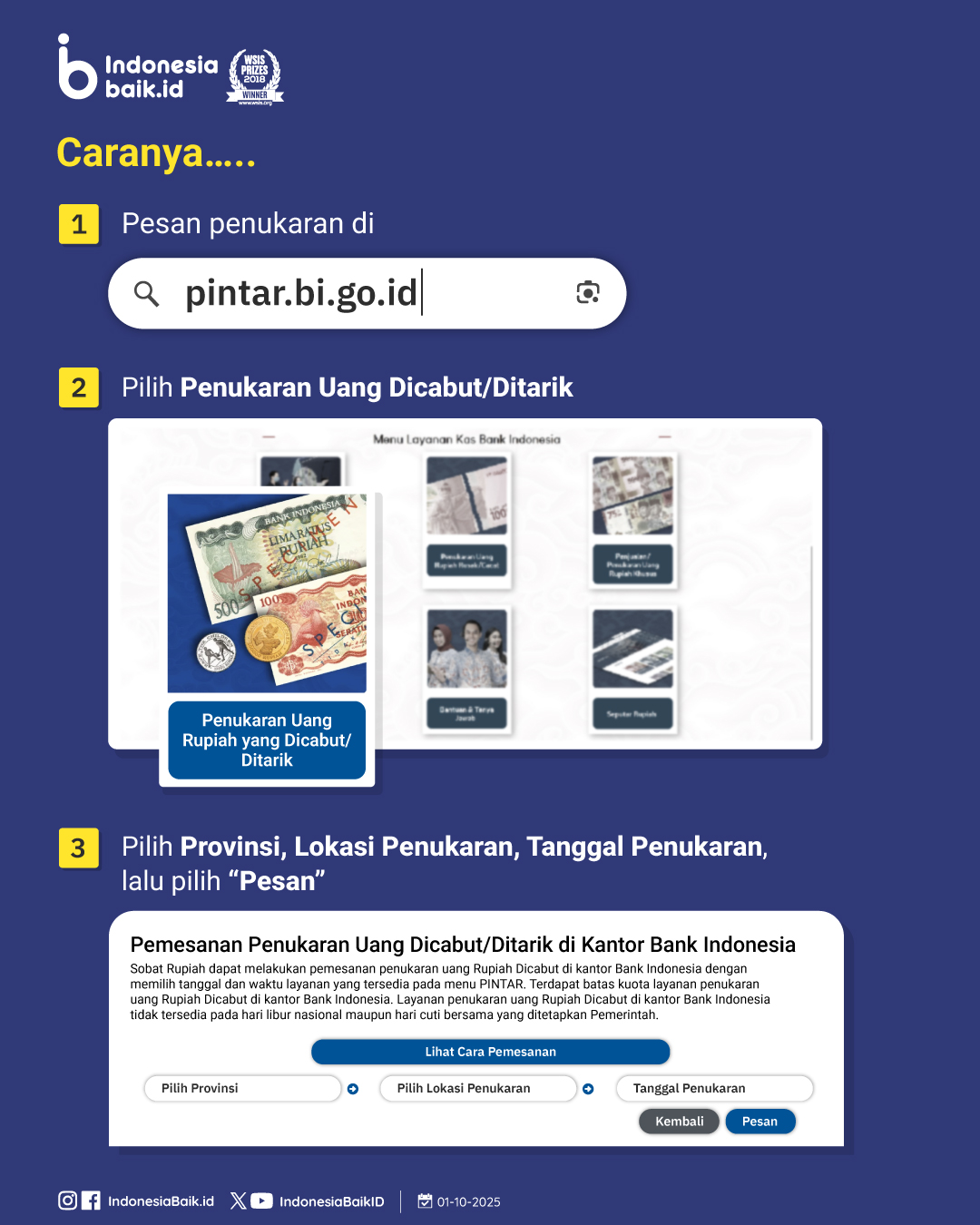 - Periksa batas waktu penukaran agar uang masih bisa diterima untuk ditukar.