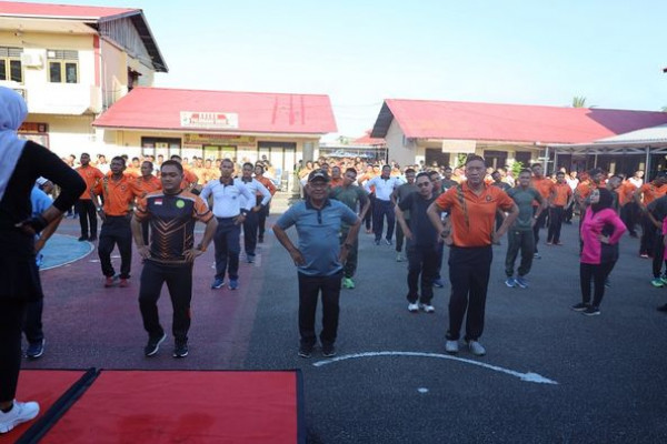 TARAKAN – Wakil Wali Kota Tarakan, Effendhi Djuprianto, mengikuti Halal Bihalal dan Olahraga Bersama TNI-POLRI dan Forkopimda di Mak...