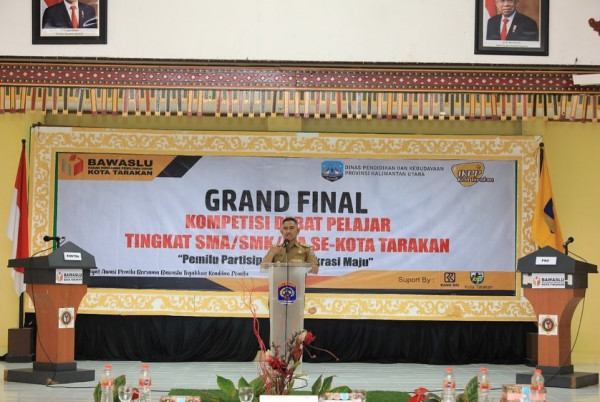 TARAKAN – Wali Kota Tarakan, dr. H. Khairul, M.Kes., menghadiri Final Kompetisi Debat Pemilu Tingkat Pelajar Se-Kota Tarakan di Gedu...