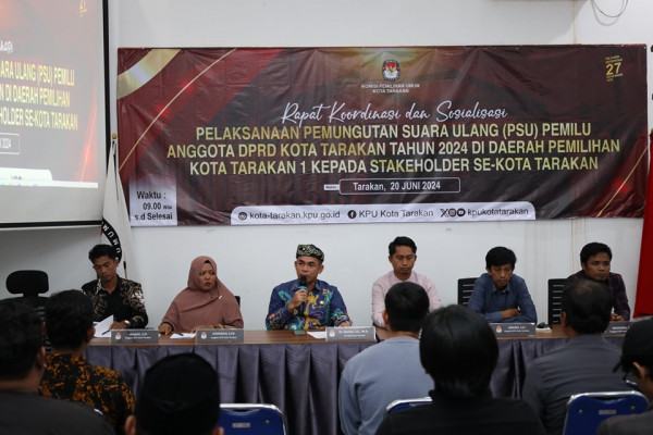 TARAKAN - Pj. Wali Kota Tarakan, Dr. Bustan, S.E., memimpin rapat Persiapan Pemungutan Suara Ulang (PSU) untuk Calon Legislatif DPRD Kota Tarakan Daer...