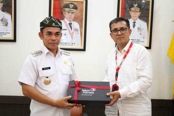 Tarakan – Penjabat (Pj) Wali Kota Tarakan, Dr. Bustan, S.E., M.Si., menerima kunjungan General Manager PT. Telkomsel Indonesia (Pers...