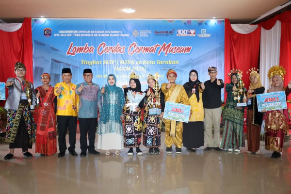 TARAKAN - Wakil Wali Kota Tarakan, Ibnu Saud Is, menyerahkan piala penghargaan kepada para pemenang Lomba Cerdas Cermat Museum tingkat SLTP sederajat...